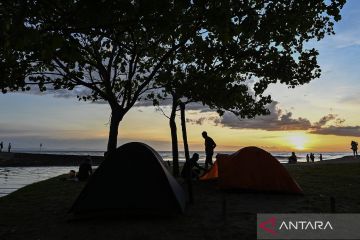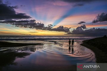 Pengunjung menikmati panorama matahari terbenam di kawasan objek wisata pantai Kerandangan, Senggigi, Kecamatan Batulayar, Lombok Barat, NTB, Kamis (25/12/2025). Dinas Pariwisata Provinsi NTB mencatat jumlah kunjungan wisatawan ke Provinsi NTB dari Januari hingga Oktober 2025 mencapai 2,09 juta kunjungan yaitu mendekati target kunjungan wisatawan tahun 2025 sebesar 2,3 juta kunjungan. ANTARA FOTO/Ahmad Subaidi/agr