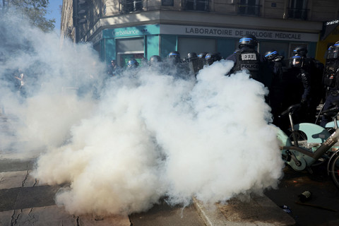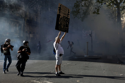 Massa aksi melakukan demonstrasi di jalan-jalan di Prancis, Kamis (18/9) waktu setempat.