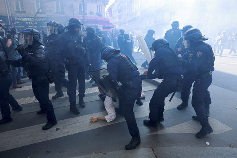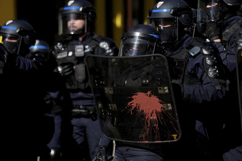 Dalam demonstrasi tersebut mereka memprotes kebijakan efisiensi anggaran pemerintahan Presiden Emmanuel Macron.