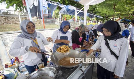 Sejumlah warga memasak ikan bandeng tanpa duri saat kampanye Gerakan Memasyarakatkan Makan Ikan (Gemarikan) di Taman Cimanuk, Indramayu, Jawa Barat, Sabtu (11/10/2025). Kegiatan yang digelar Dinas Perikanan dan Kelautan (Diskanla) Indramayu itu untuk mengampanyekan gerakan konsumsi ikan kepada seluruh masyarakat demi terciptanya generasi penerus bangsa yang berkualitas. (FOTO : ANTARA FOTO/Dedhez Anggara)